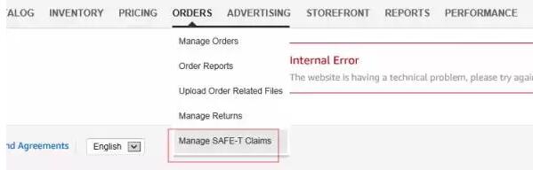 1. 在卖家平台的订单选项卡中,点击管理 SAFE-T 索赔。